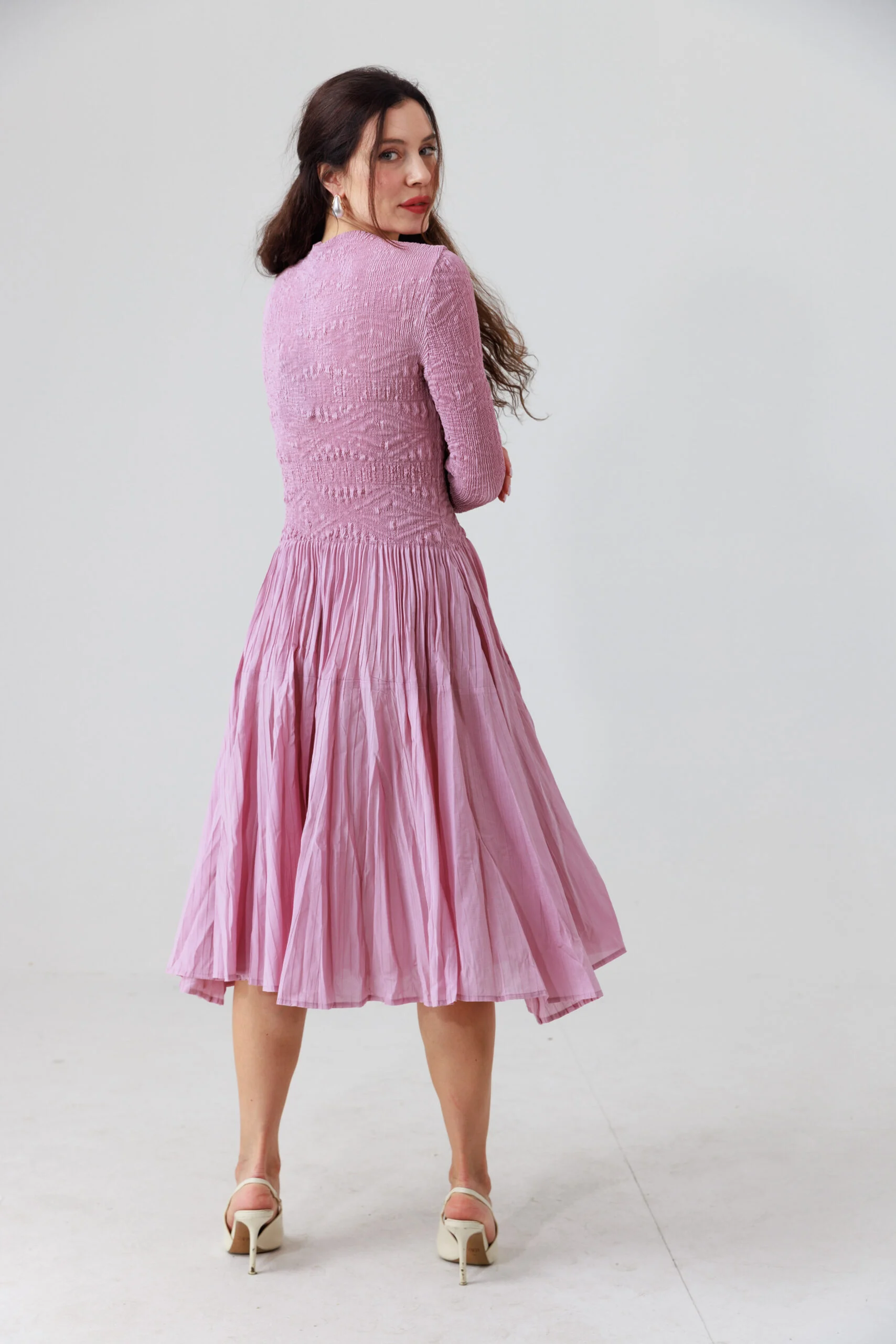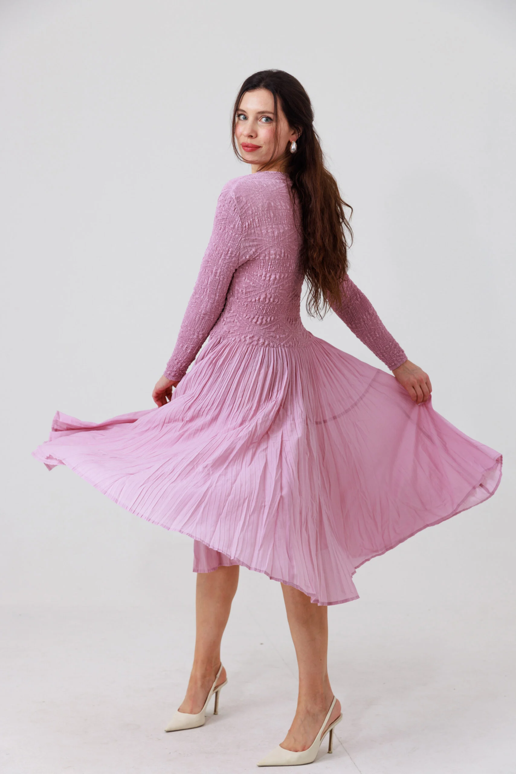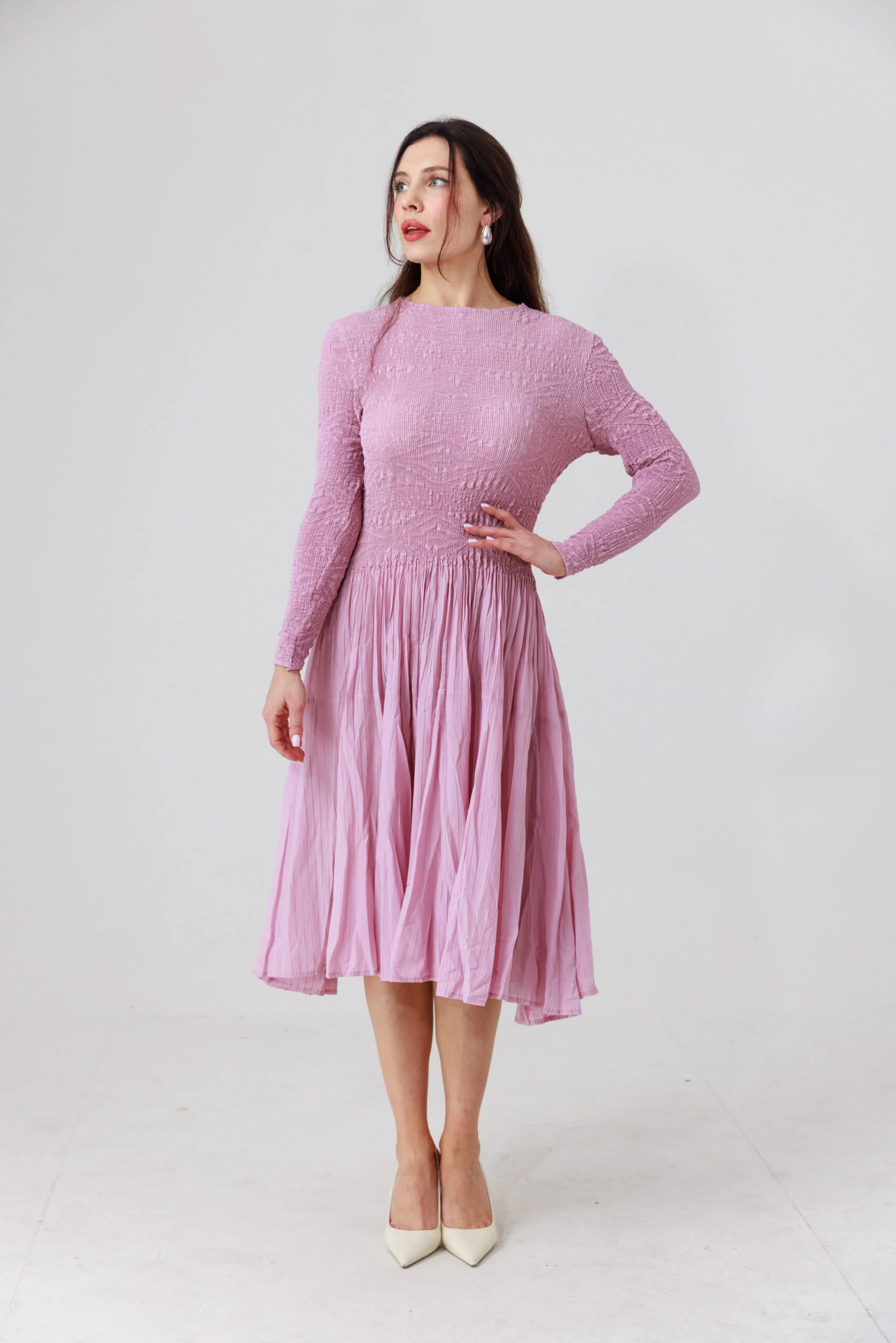 שמלה קלילה וצנועה באורך ברך מבד דק ונעים