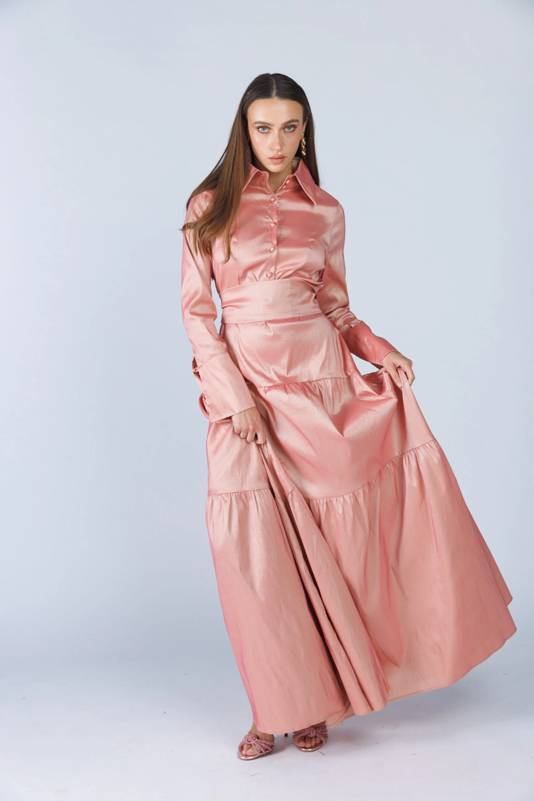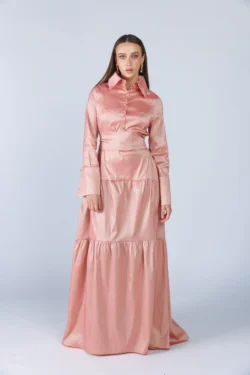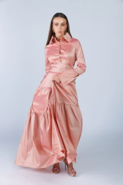 שמלה צנועה אורכה לאירוע מבד טפט ,