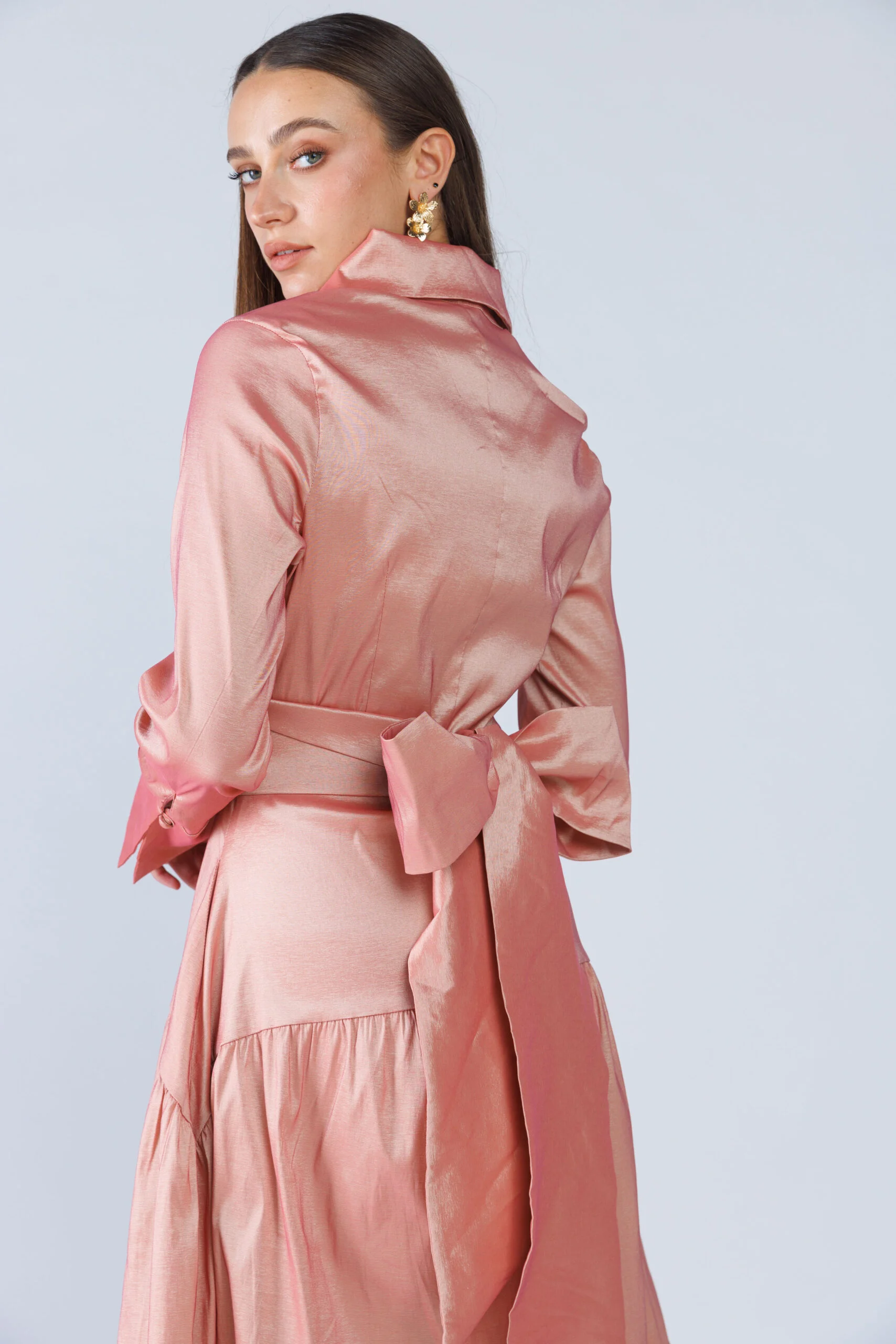 צבע ורוד מעושן מיוחד, מגיעה עם חגורת טפט,