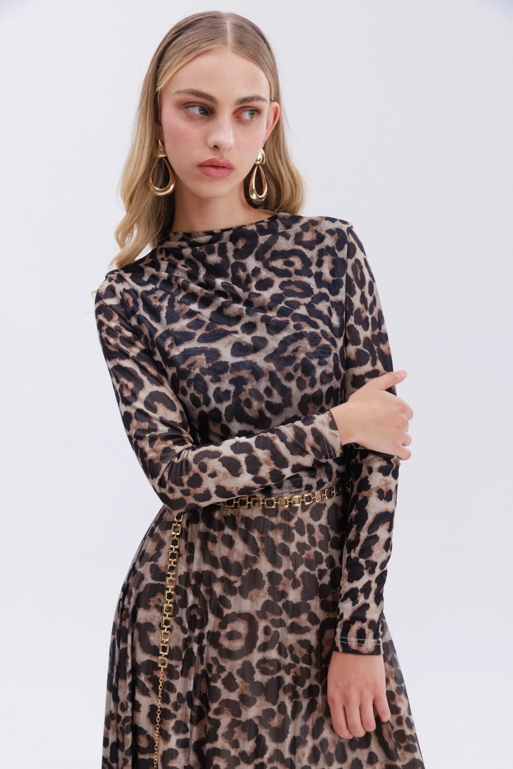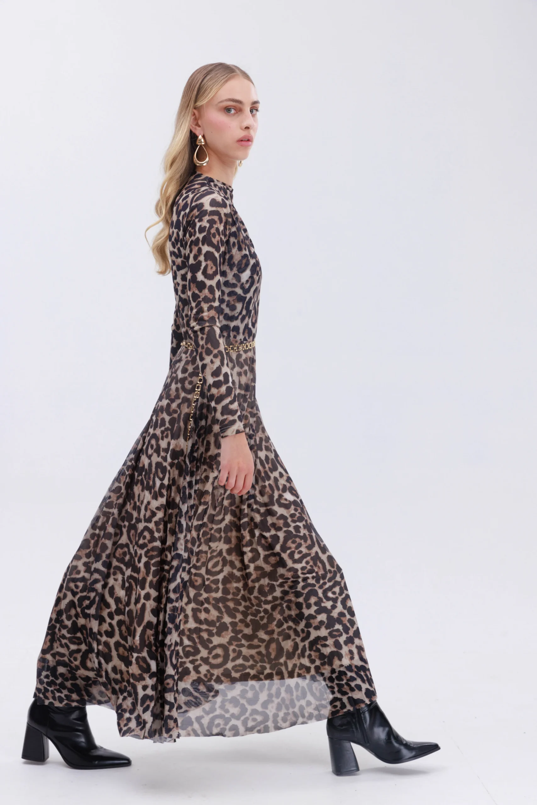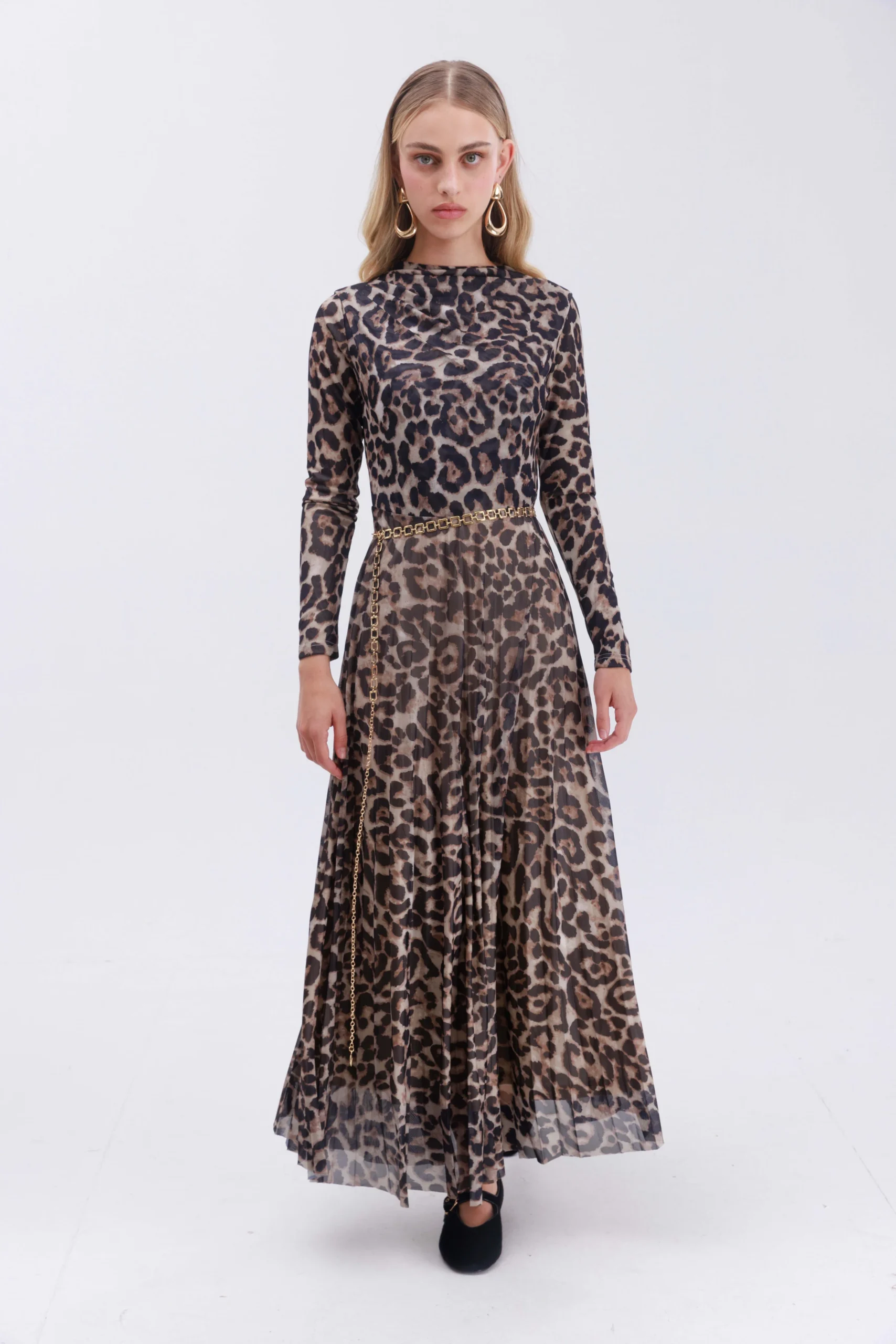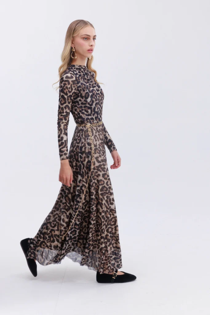 השמלה מגיעה עם חגורת שרשרת שמדגישה את קו המותן