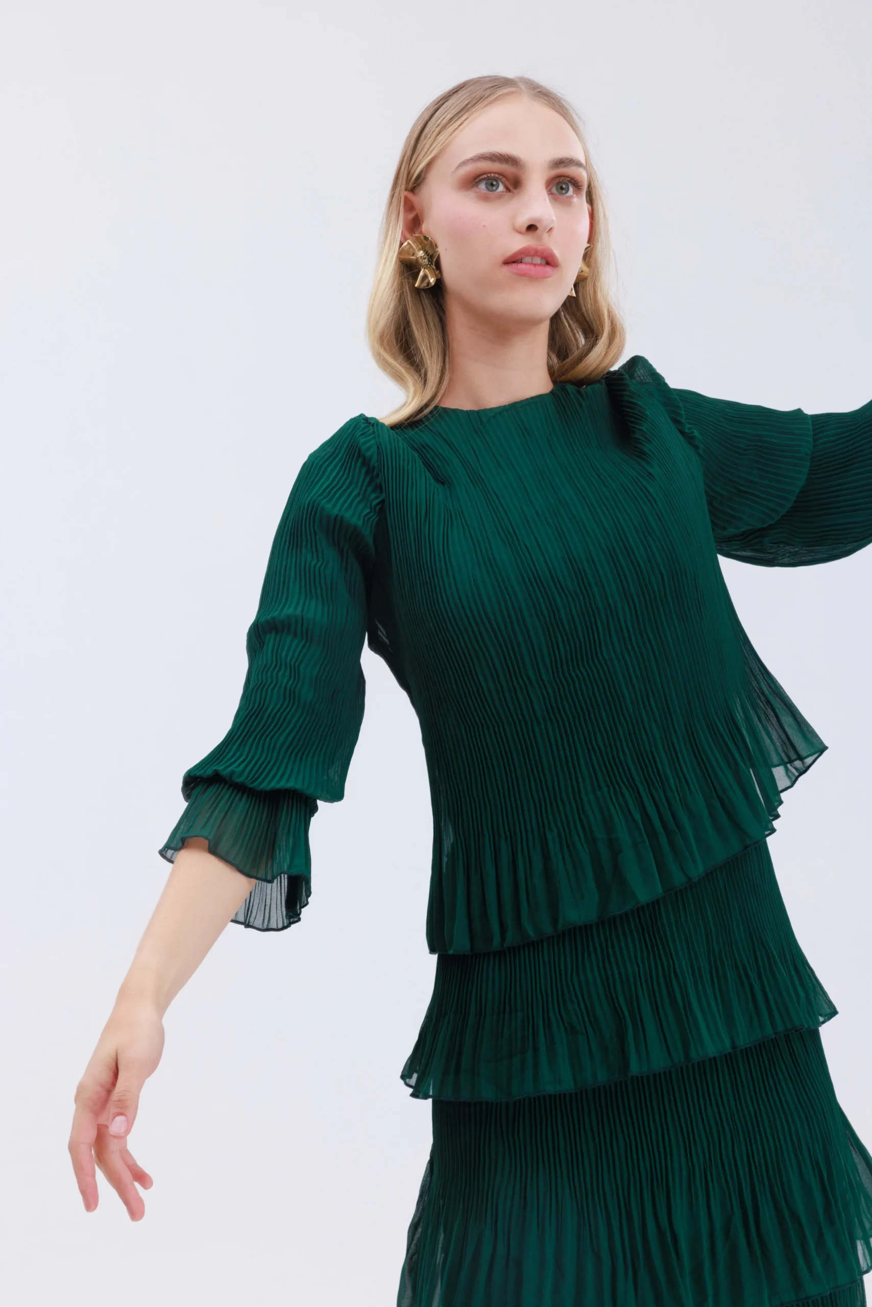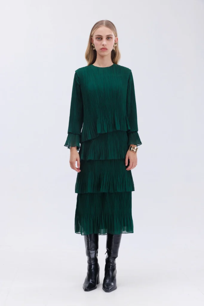שמלה חגיגית ומרשימה בגוון ירוק עמוק ומיוחד.